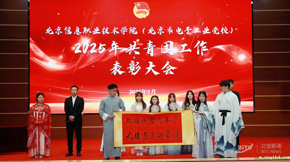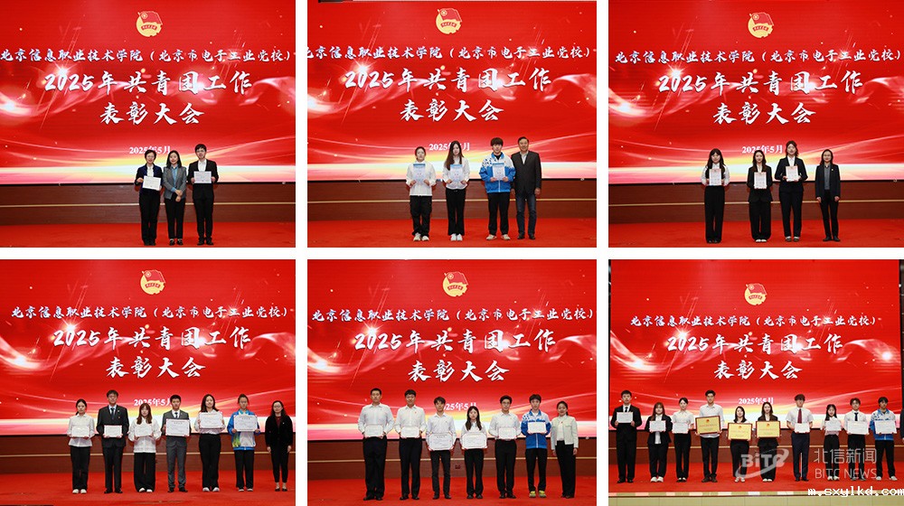 为深入贯彻习近平总书记关于青年工作的重要思想,激励团员青年传承红色基因、勇担时代使命,展现新时代青年昂扬向上的精神风貌和强国有我的责任担当,5月9日,学校2025年共青团工作表彰大会在东坝校区报告厅举行。学校党委副书记、工会主席宋梅,党委委员、副校长董国东,北京电控团委副书记樊琪出席会议。学校党政相关部门领导,二级学院党支部书记、学生工作副院长参加会议。大会由学校团委副书记黄超、李硕主持。
