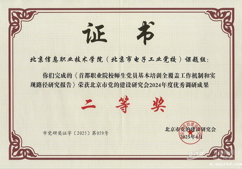 近日,北京市党的建设研究会下发了2024年度优秀党建研究成果奖项,我校牵头申报的《首都职业院校师生党员基本培训全覆盖工作机制和实现路径研究报告》荣获2024年度优秀调研成果二等奖。这是继2023年我校主持的研究课题《新时代首都职业院校党建工作评价基本标准研究报告》荣获优秀调研成果二等奖之后,再次在全市党建研究课题中获奖,充分彰显了学校在党建研究领域的持续深耕与创新突破。